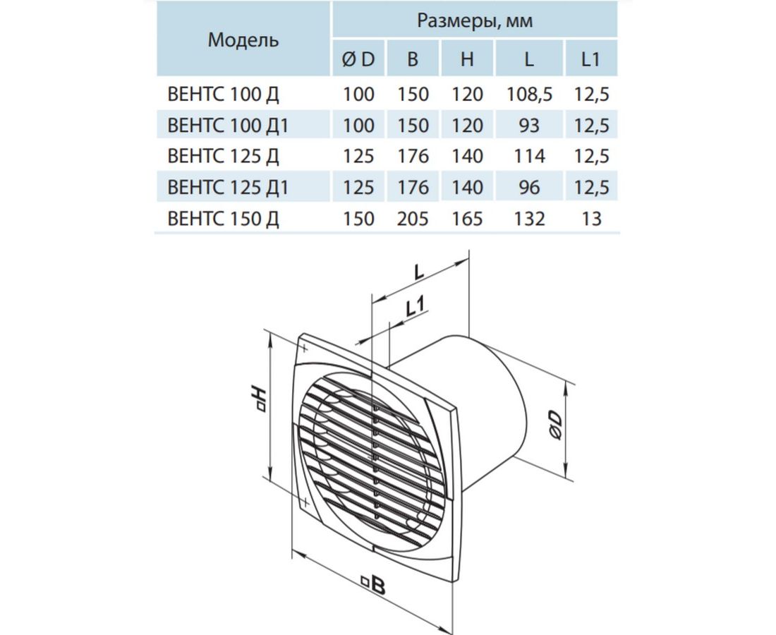 Вытяжной вентилятор Вентс 100 Д1ТН