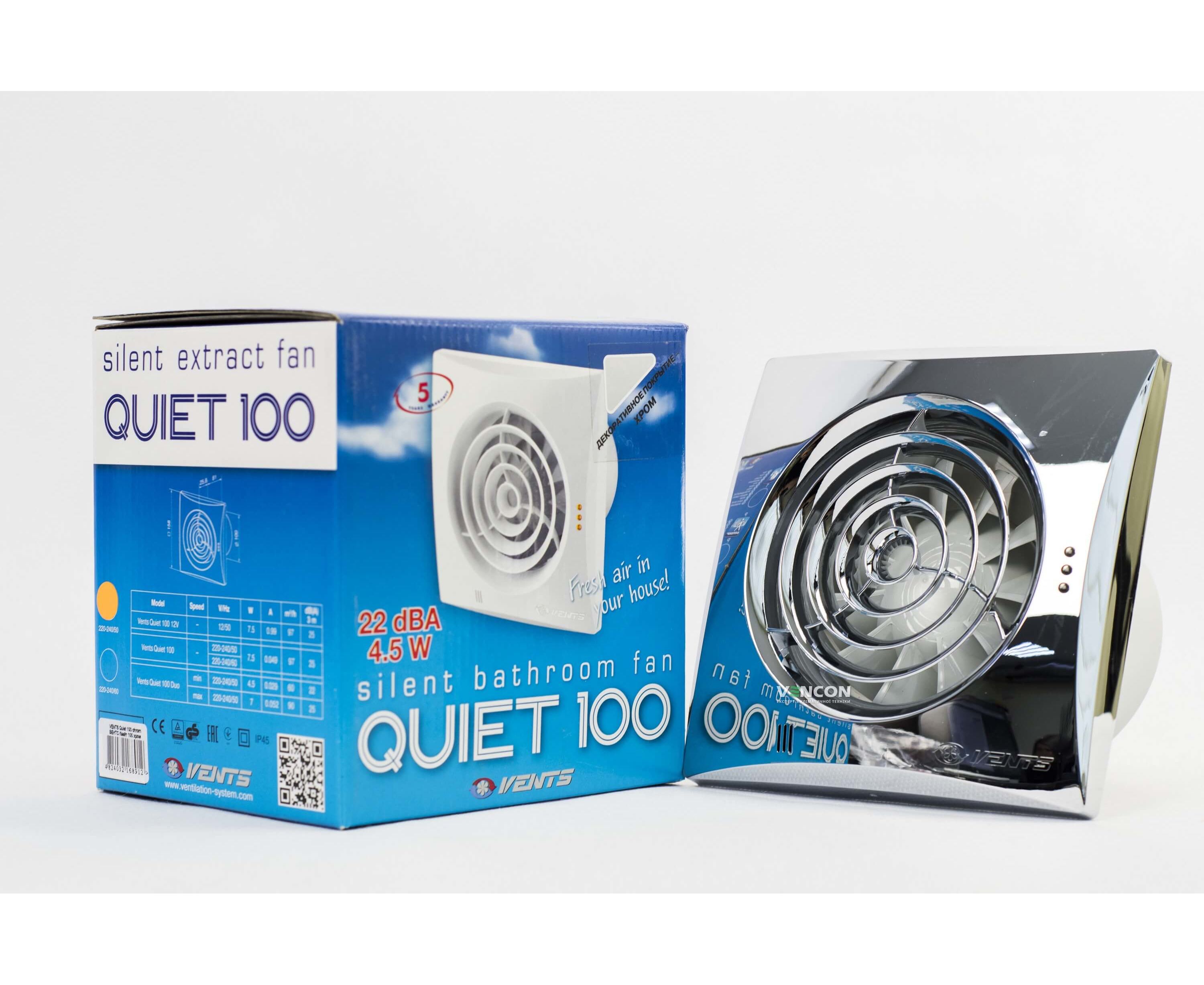 Цена Вентс 100 Квайт Хром оправдана высокой эффективностью и долговечностью работы. Заказать этот товар у нас можно с доставкой по всей Украине. Наши эксперты поделятся мнениями о Вентс 100 Квайт Хром и ответят на все ваши вопросы. Оставляйте свои отзывы о работе вентилятора на страницах нашего сайта.