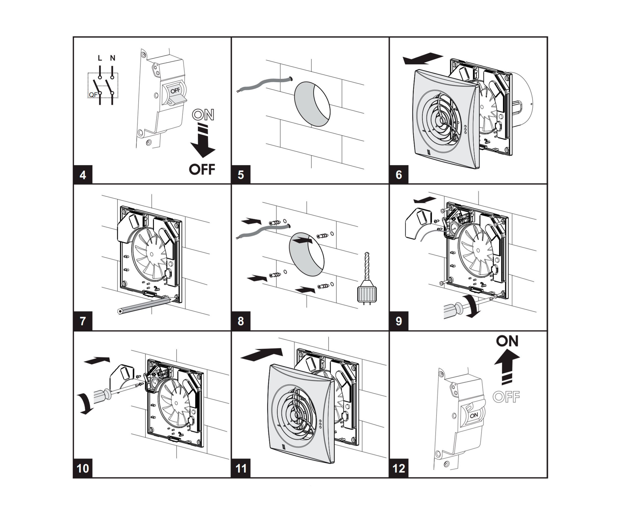 Подходит для монтажа в вентиляционный канал диаметром 100 мм для настенной или потолочной установки. Если вент шахта находится далеко от необходимого места размещения, можно использовать гибкие воздуховоды.
