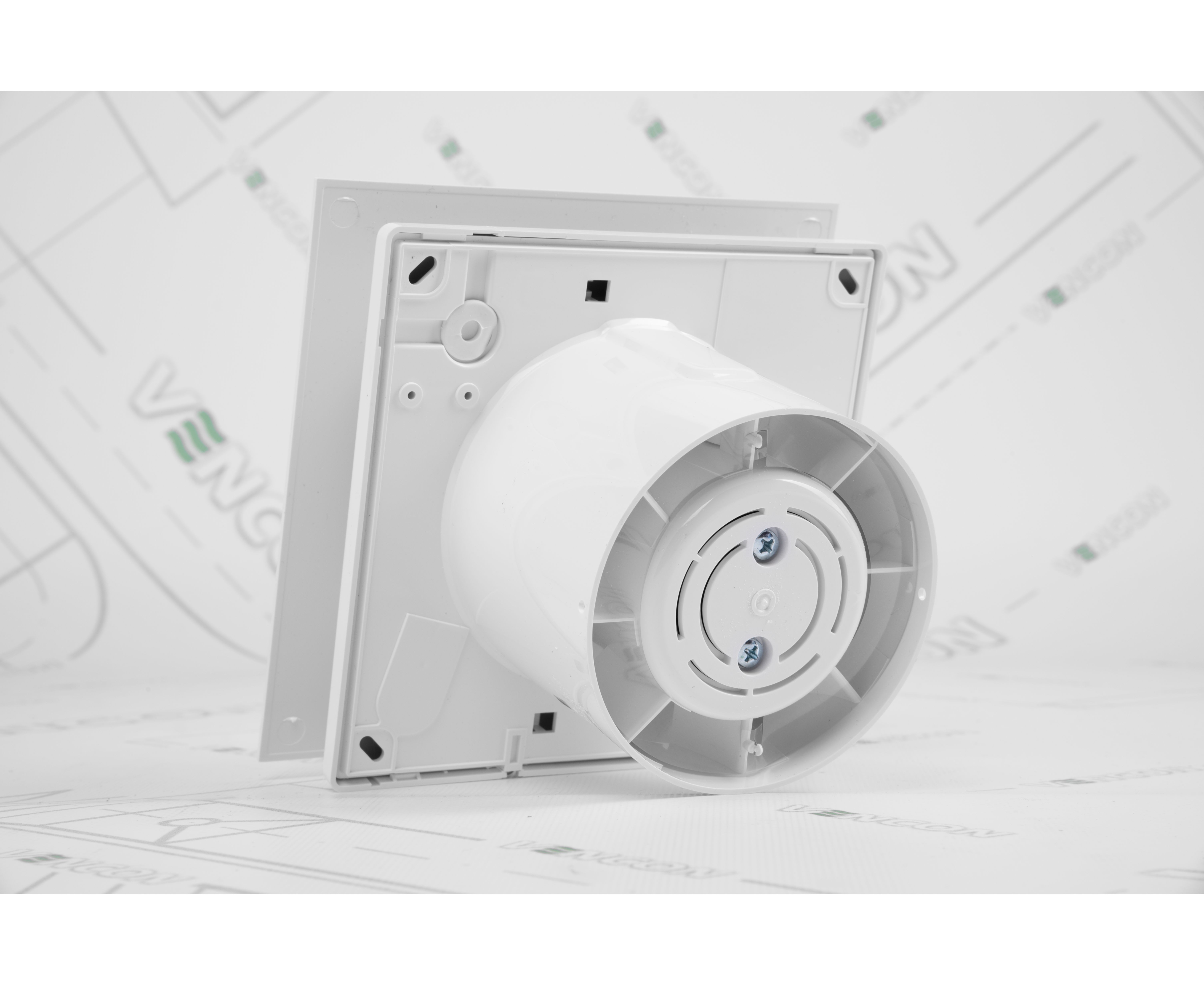 Корпус, крыльчатка и лицевая часть произведены из прочного ABS-пластика, устойчивого к механическим повреждениям. Энергосберегающая и тихая работа прибора достигается за счет таких особенностей конструкции: