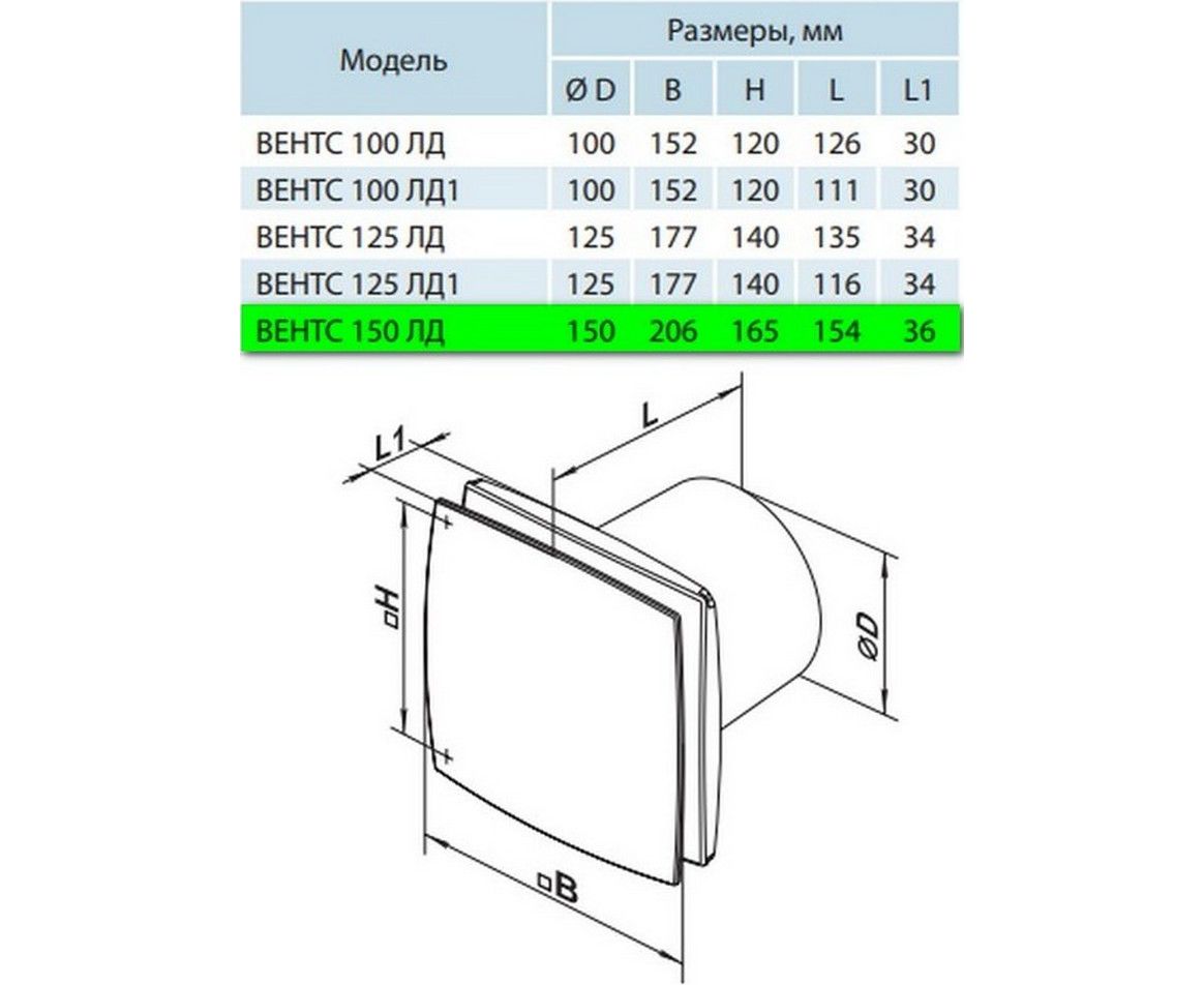 Вытяжной вентилятор Вентс 150 ЛД В