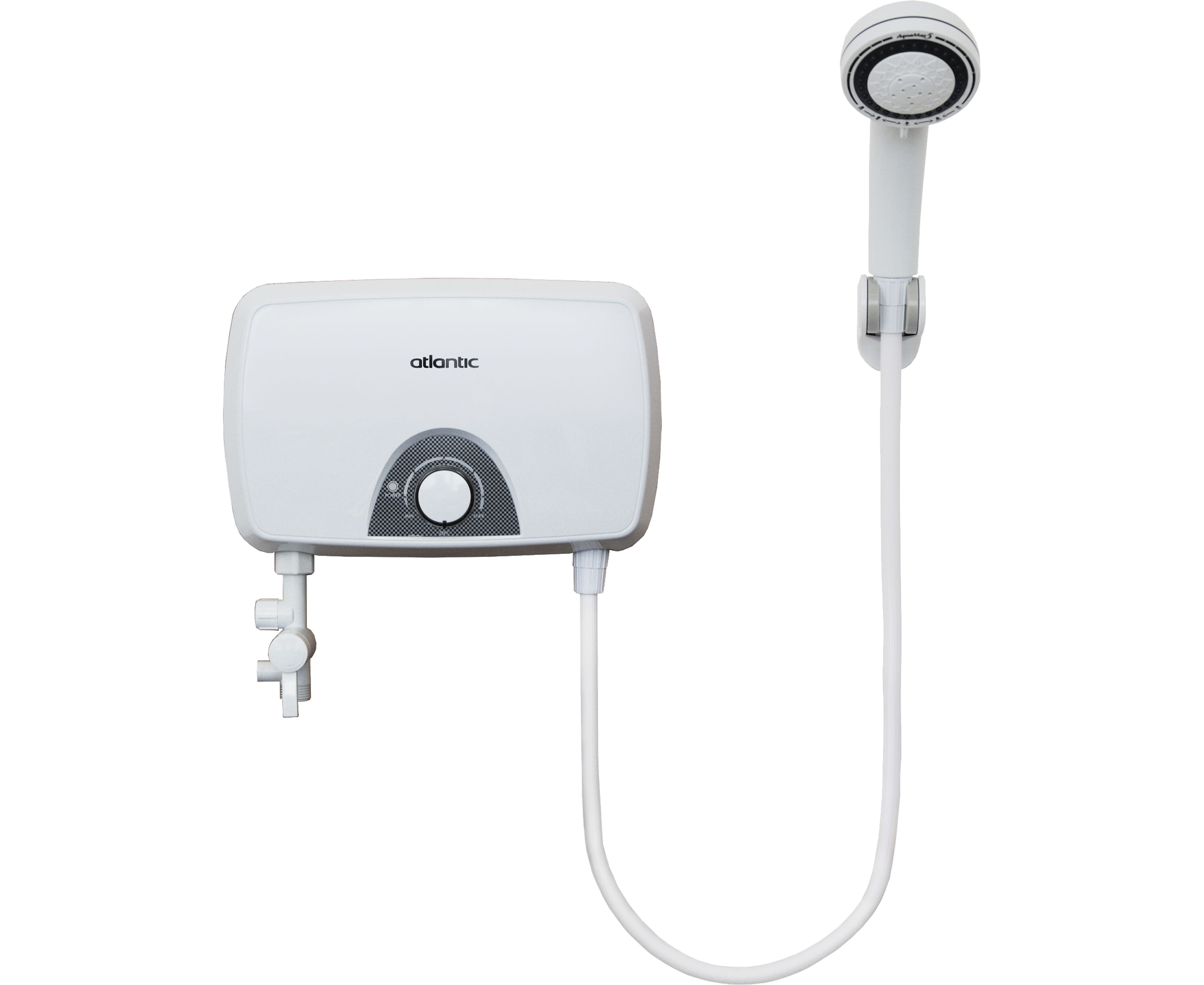 Atlantic Ivory SB IV202 5.5 kW (скоба+шланг+лейка) – электрический проточный водонагреватель с гидравлическим регулированием, позволяющий быстро получить горячую воду. Устройство имеет компактный корпус из высококачественного литого пластика и плавную регулировку температуры. Для того, чтобы задать необходимую температура горячей воды, необходимо отрегулировать два параметра: мощность нагревательных элементов при помощи регулятора мощности, и проток воды через водонагреватель при помощи запорного вентиля, который входит в комплектацию. Нагревательным элементов для данного водонагревателя является медный ТЭН мощностью 5.5 кВт. Устройство имеет возможность работать только с одной точкой потребления воды.